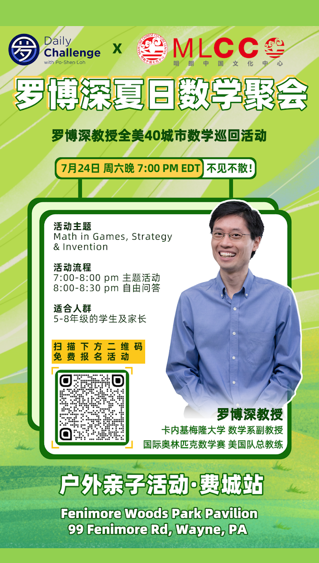 1. Renowned Mathematician Po-Shen Loh Visits Main Line on July 24